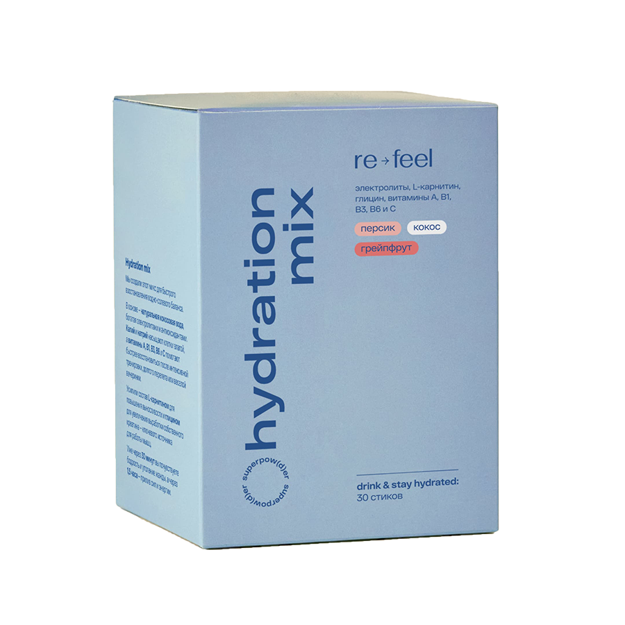 Главная / Продукты / Напитки / Изотоник электролит в стиках HYDRATION MIX с персиком-маракуйей (1 шт) ReFeel